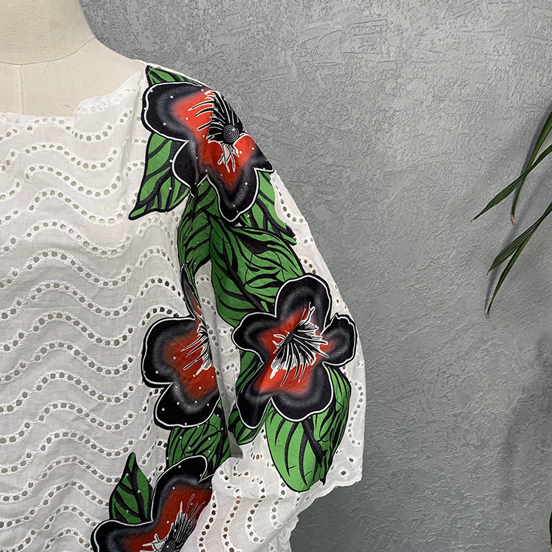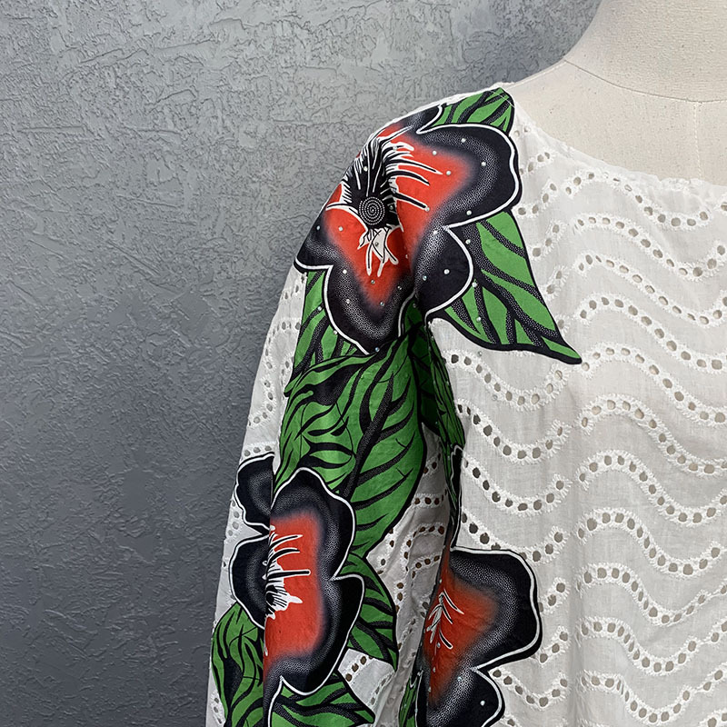 Nom du tissu : Dentelle en coton brodé ajouré