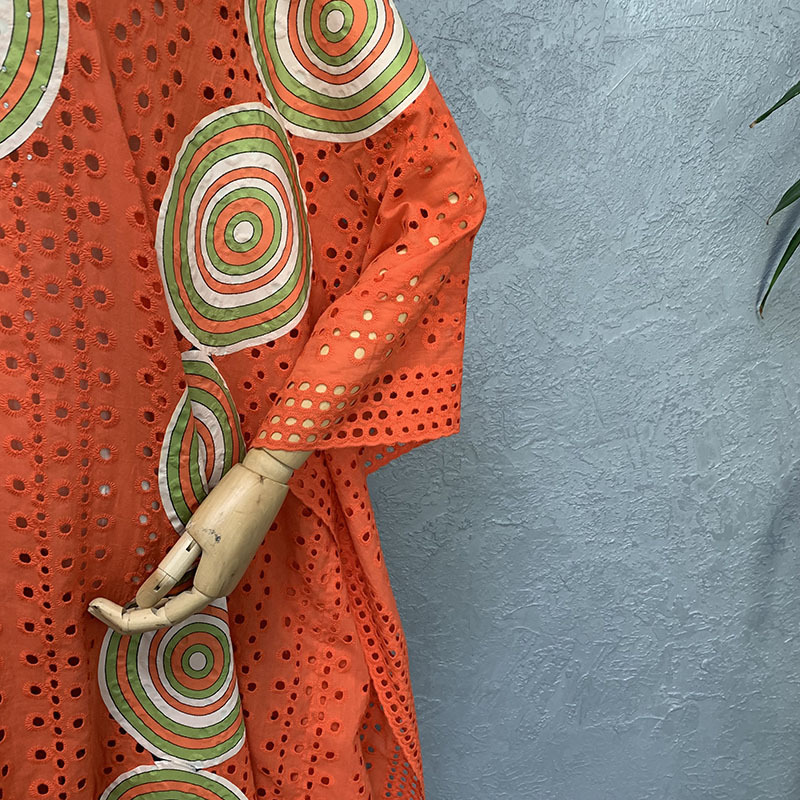 La robe femme en coton brodé ajouré est une pièce unique qui allie modernité et authenticité.